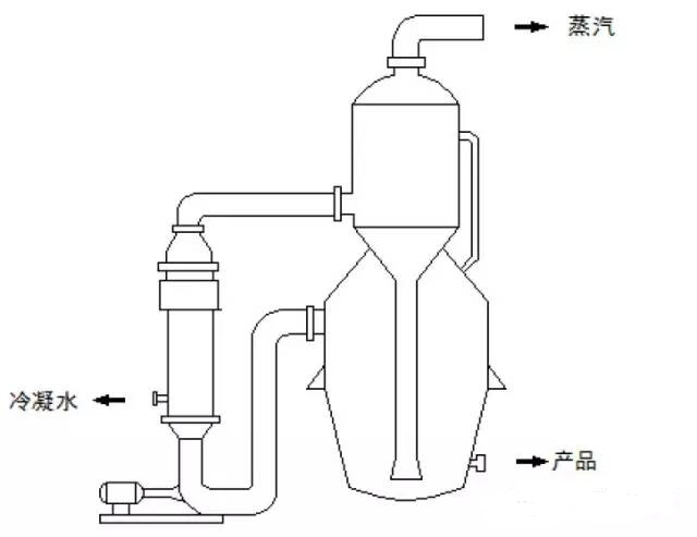 蒸發產生二次蒸汽從物料中溢出,物料被濃縮產生過飽和而使結晶生長,解除過飽和的物料進入強制循環泵,在循環泵作用下進入換熱器,物料如此循環不斷蒸發濃縮或濃縮結晶。